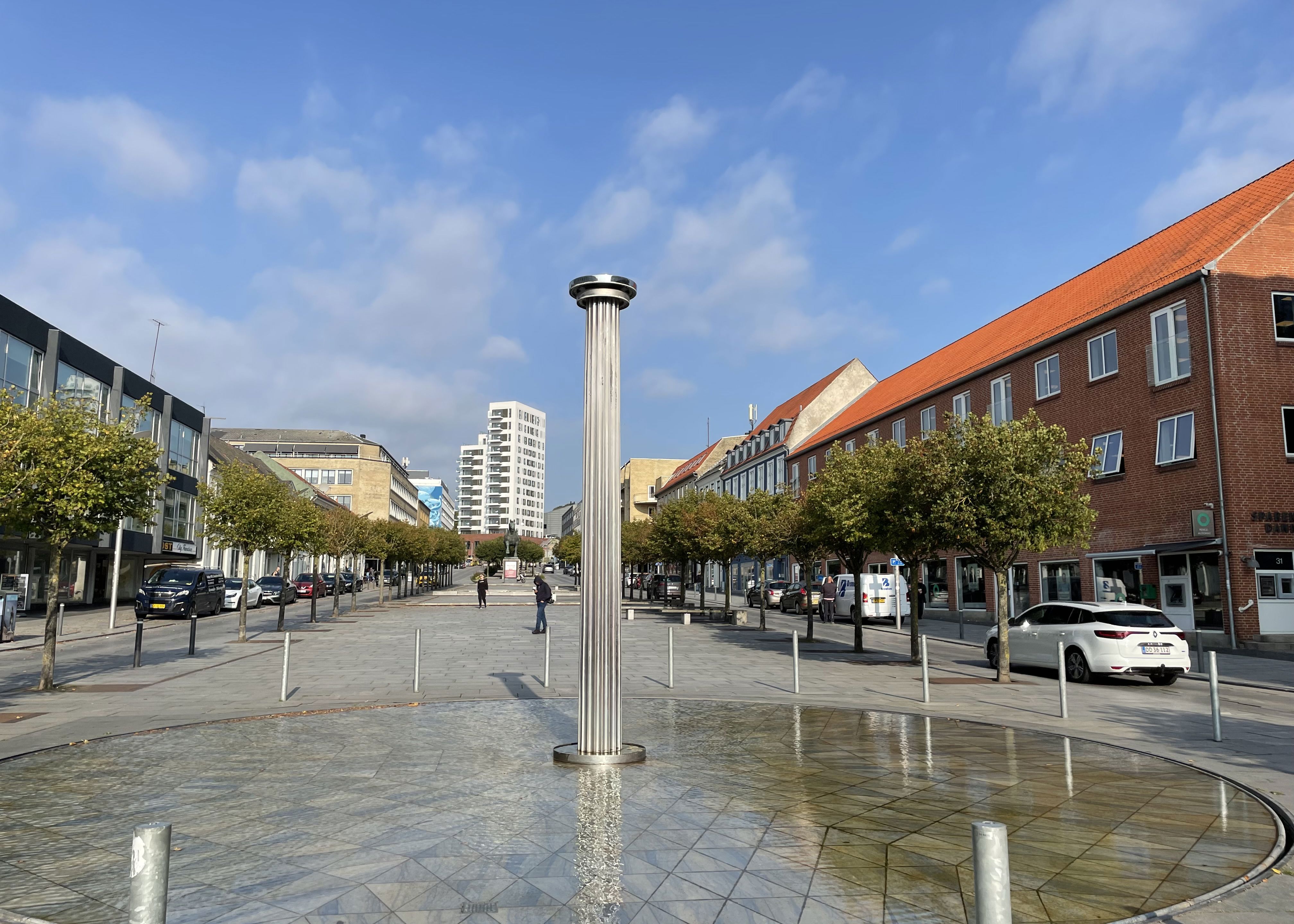 Fontænen er realiseret i 2009 som et svalt element i et travlt bymiljø. Sammenspillet mellem vand, lys og fundamentets blå farve er gennemgående i skulpturen, som spejler omgivelserne og himlen. Den særlige, hvide gennemlysning af vandet, der omkranser midtersøjlen, tilfører fontænen en sitrende transparens.