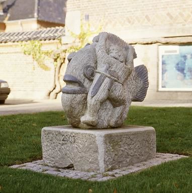 The sculpture refers to the myth of the death of Balder, from Norse mythology. Loke transforms himself into the woman Tøk and tricks the blind Høder into shooting Balder. Loke must then make his escape and transforms himself into a salmon, in order to hide. On one side of the sculpture, Tor can be seen with his hammer, as he and the other gods finally catch Loke.